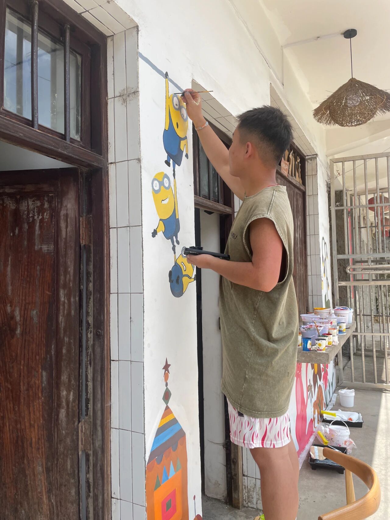 在云南省昭通市,鲁潇用画笔为斑驳的旧墙增添色彩。他画下可爱的卡通图案,让原本灰暗的墙面焕发活力。
