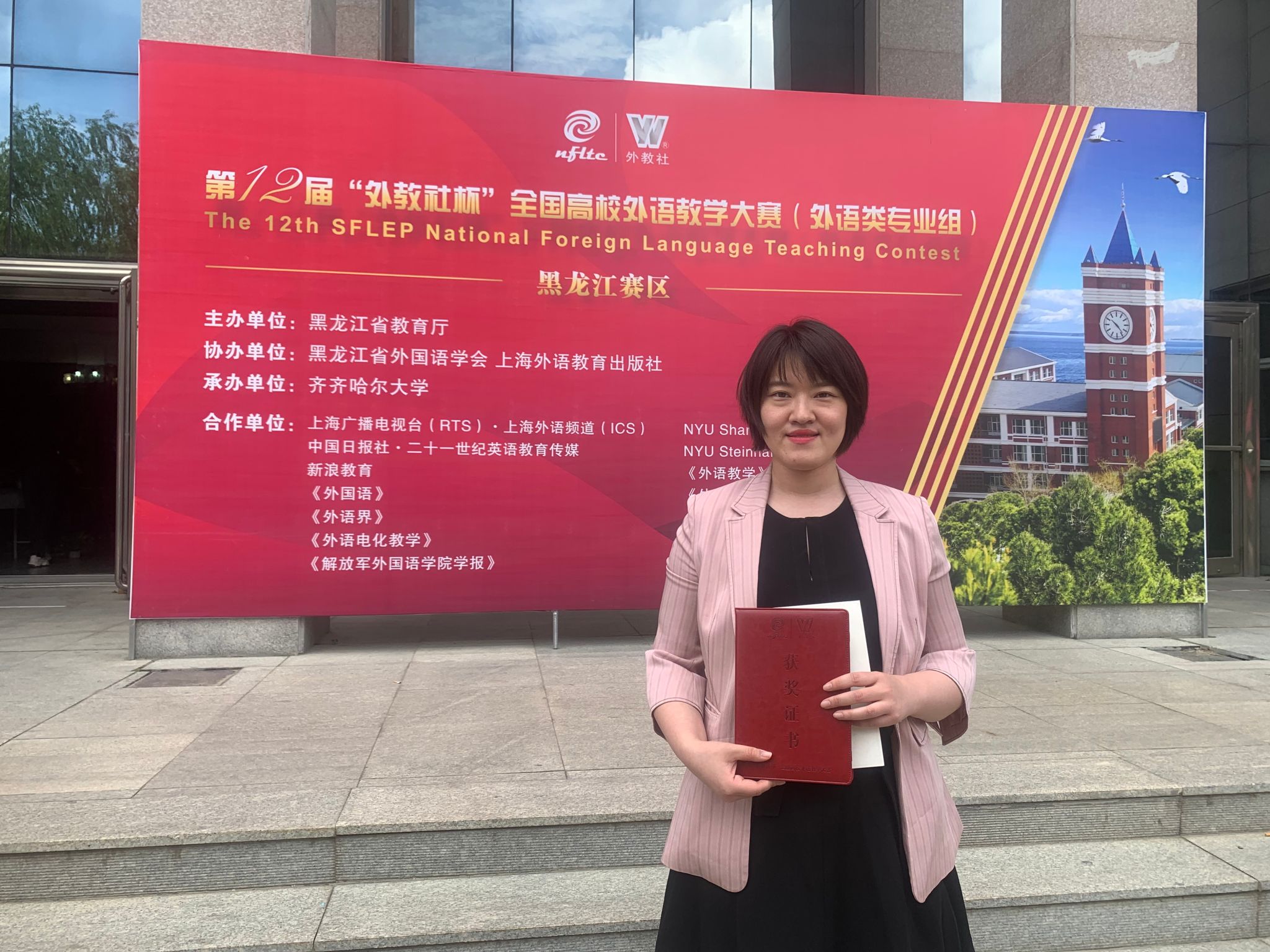 在第七届黑龙江省"亿学杯"商务英语实践技能大赛中,闫彦指导的队伍与黑龙江大学、哈尔滨师范大学等强校同台竞技,最终荣获省级二等奖。更令人振奋的是,她指导的学生在全国高师学生英语教师职业技能大赛中荣获国家级一等奖,创下学校在该项赛事的历史最好成绩。这些成绩背后,是她无数个周末陪学生训练、反复打磨的付出。