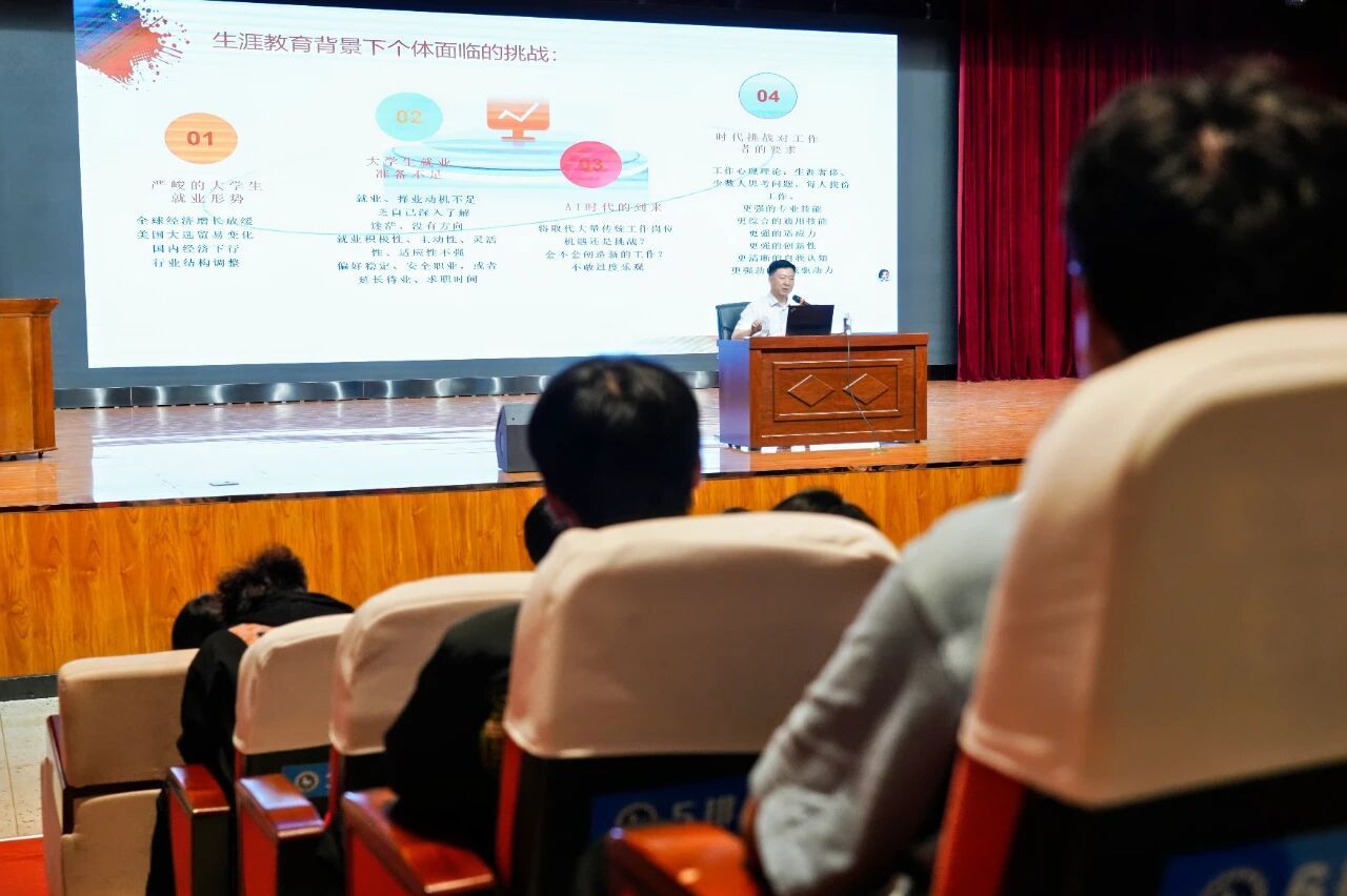 郭教授指出,职业生涯规划并非对未来的固定设定,而是一个在自我认知与外部探索中持续优化、动态调整的成长过程。他通过真实案例,引导学生们发掘个人优势、把握行业动向,鼓励大家以更广阔的视野谋划未来,在大学期间积极储备知识、锻炼能力、积累资源,为长远发展夯实基础。
