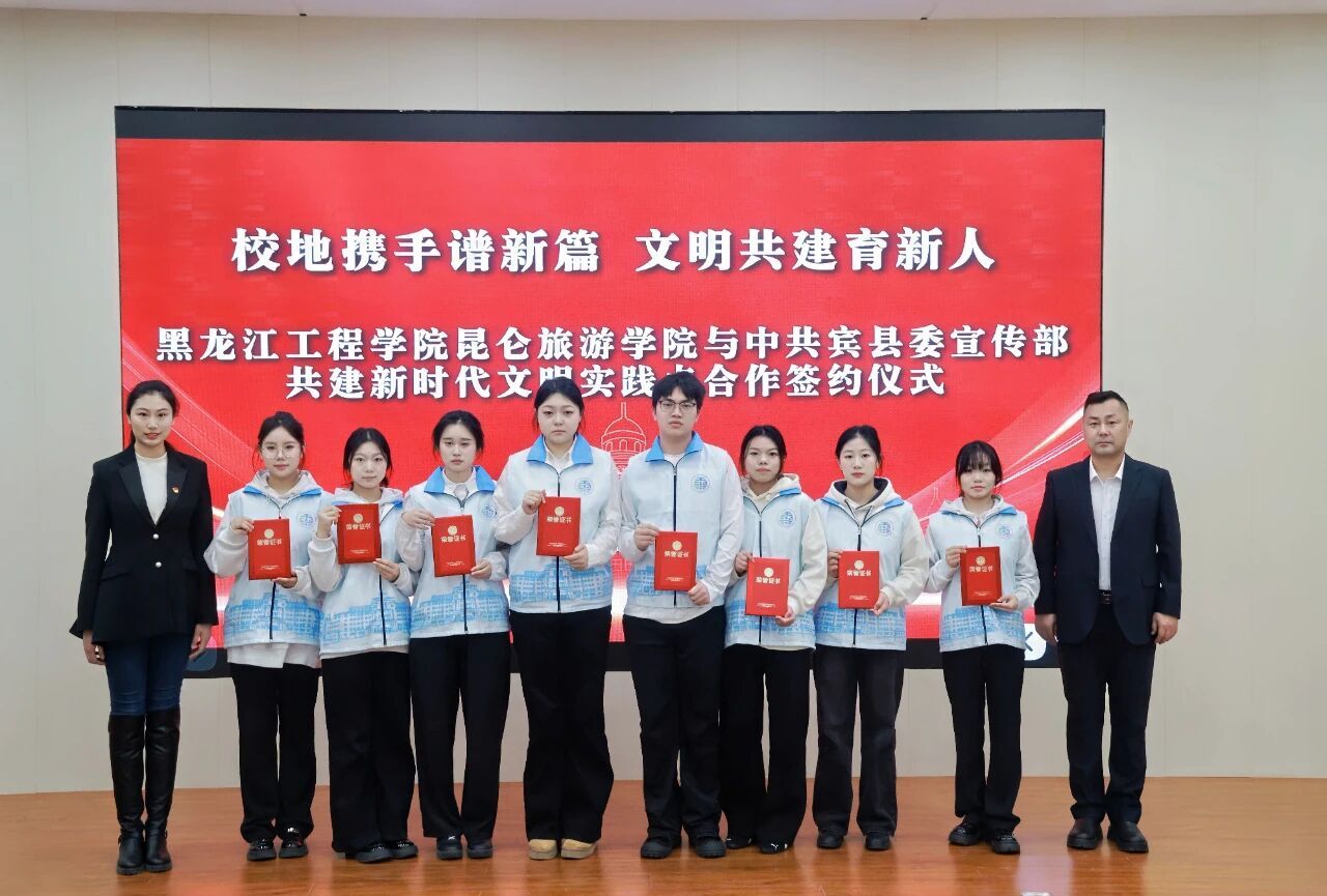 中共宾县委宣传部授予我校“宾县文明实践贡献单位”荣誉称号,由艺术系学生支部书记高嵩代表学校接牌。