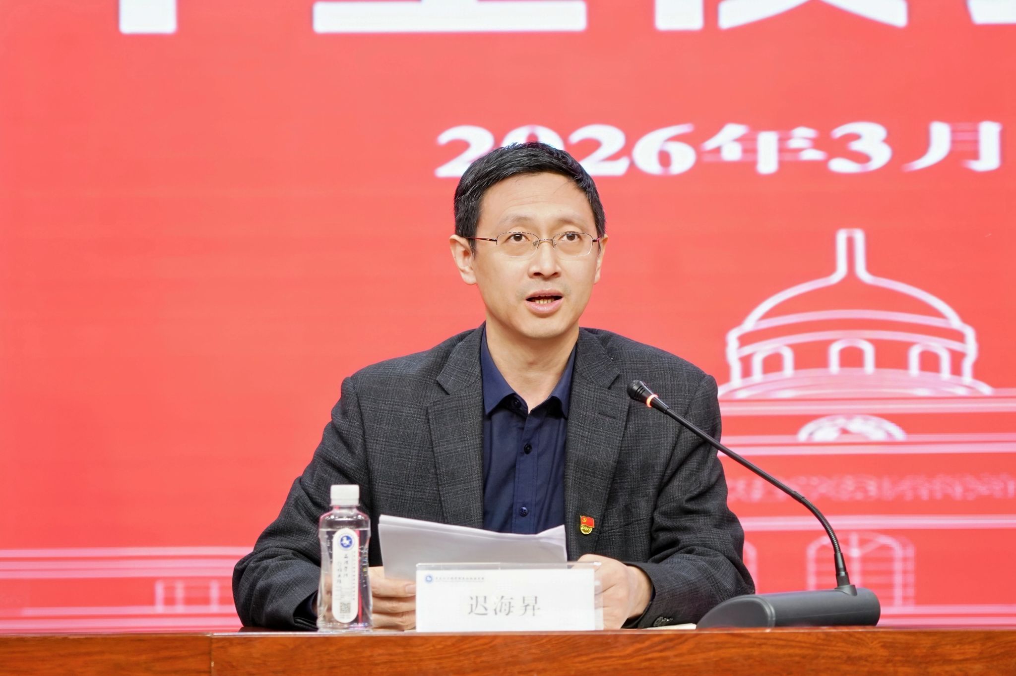 党委书记迟海昇作表态讲话。书记表示,将以“一家人、一条心、一起干”的务实姿态,快速融入昆仑大家庭,切实履行党建工作第一责任人职责,充分发挥党委政治核心作用。并强调将牢固树立“围绕发展抓党建,抓好党建促发展”的理念,把“一融双高”理念贯穿办学全过程、各环节,推动党建工作与人才培养、专业建设、产教融合等中心工作深度融合、同频共振,切实把党的组织优势转化为发展优势,把党建活力转化为创新动力。