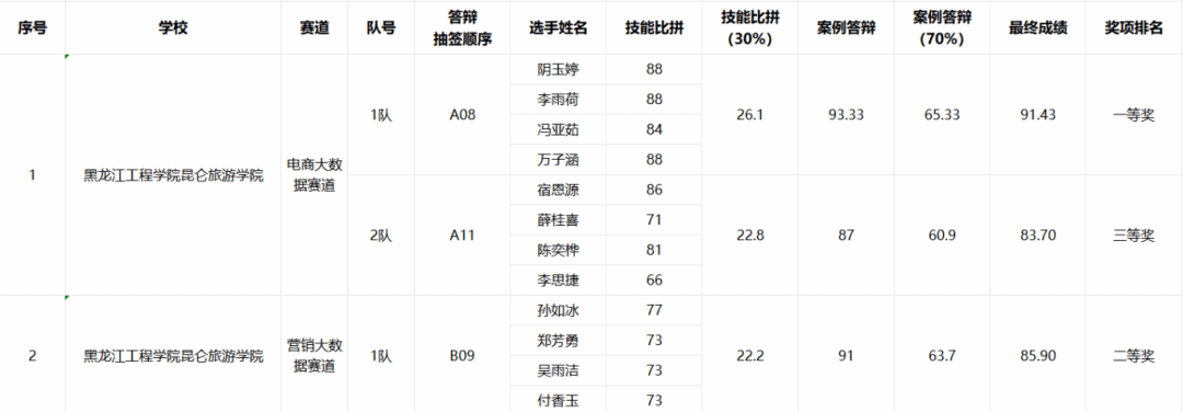 在2025年第九届”一带一路”暨金砖国家技能发展与技术创新大赛大数据分析应用与决策赛项黑龙江省赛中,我校选派的三支参赛团队全部获奖,获一等奖、二等奖和三等奖。其中,荣获一等奖的团队成功晋级全国分总决赛。
