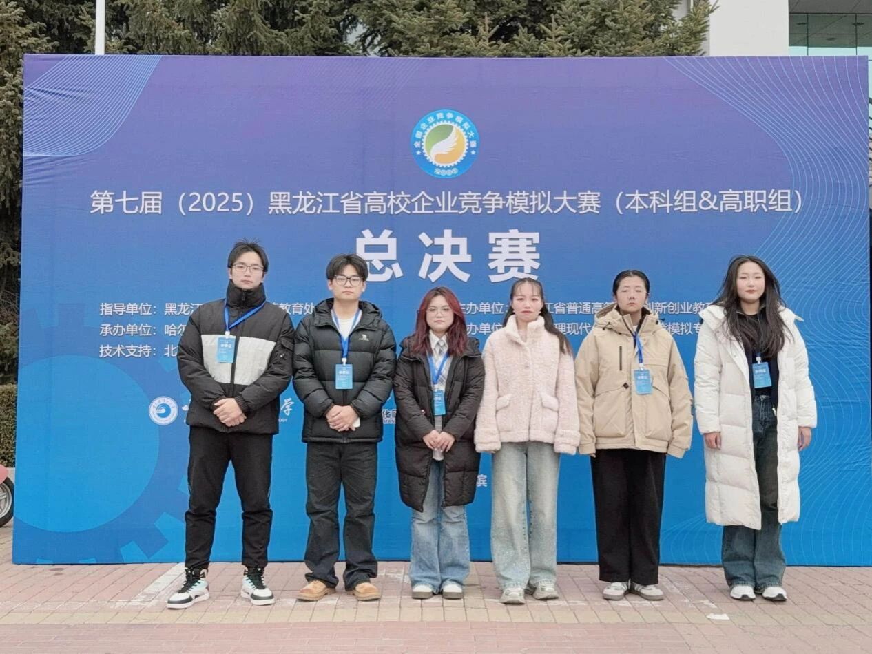 近日,第七届(2025)黑龙江省高校企业竞争模拟大赛总决赛在哈尔滨理工大学圆满落幕。我校学子表现优异,由袁亚鹏、刘紫羽、赵传同学组成的团队在决策赛道本科组荣获一等奖;孟琰、李月、吴飞霖团队荣获二等奖,实现我校在该赛事一等奖“零的突破”,创下参赛以来的最佳战绩。