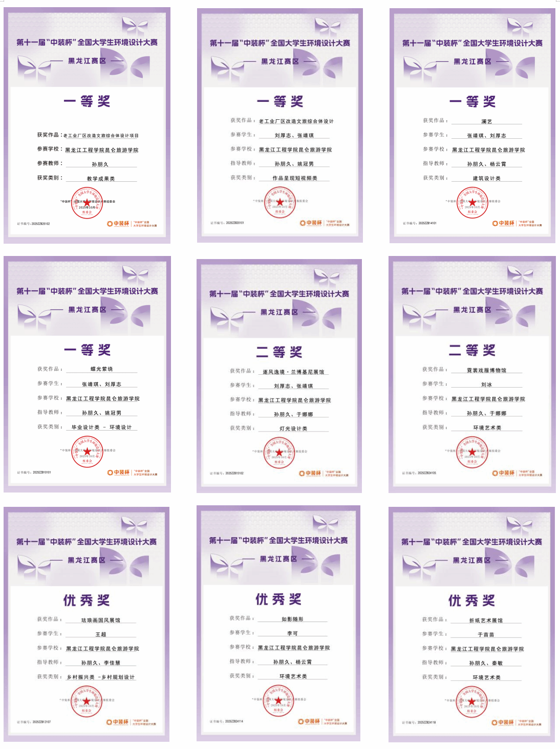 我校师生荣获“中装杯”全国大学生环境设计大赛一等奖等多个奖项