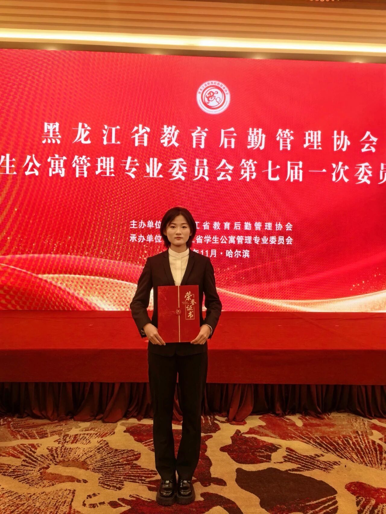 在11月7日举行的黑龙江省教育后勤管理协会学生公寓管理专业委员会第七届一次委员会议上,我校公寓辅导员房珊羽荣获黑龙江省高校“最美公寓人”称号,展现了我校后勤服务队伍的卓越风采。