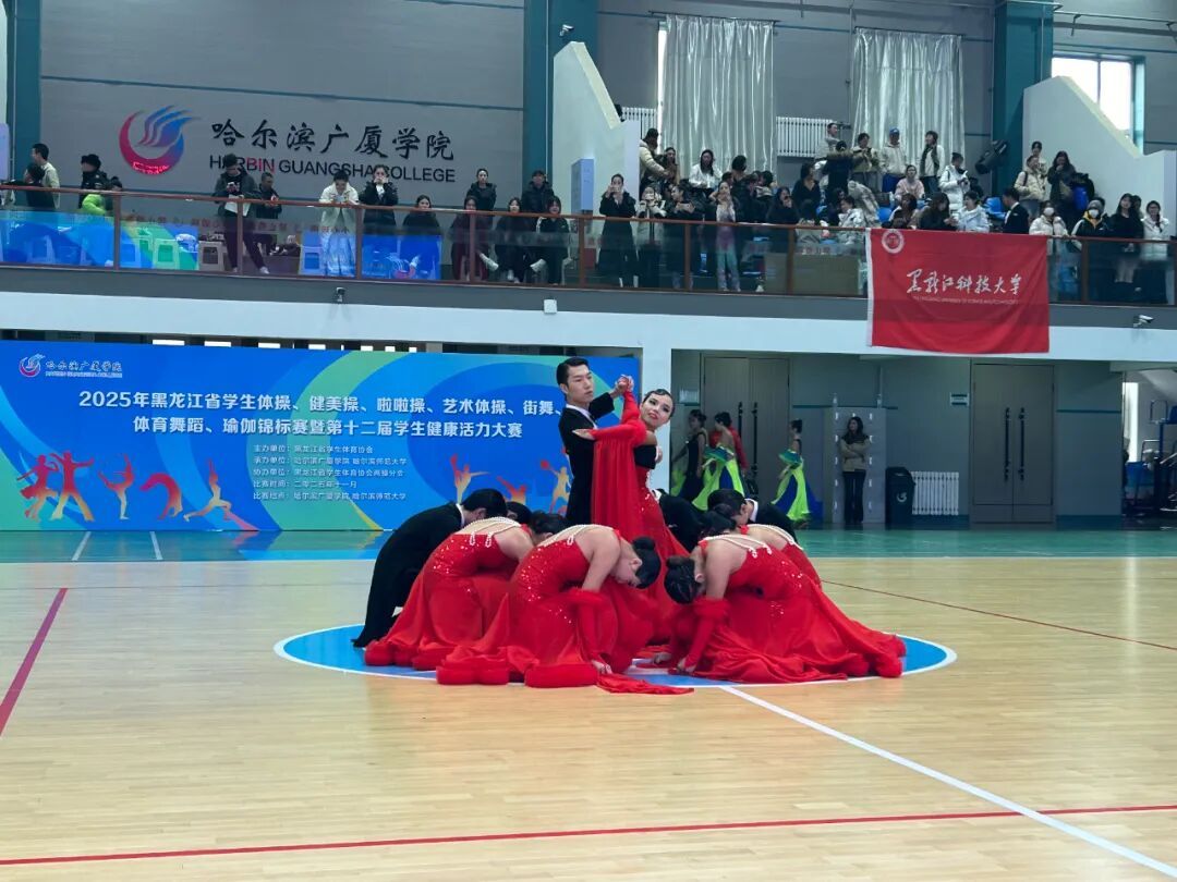 我校健美操队首次组队出征,便在共有23支队伍的激烈竞争中表现不俗。由吴旸、何依娜、苟榆苓、莫伊丽、周忠秀、张佳欣、徐思娅、安琴、常思博同学组成的团队,在 “全民健身舞5级(甲组)” 项目中荣获第五名的佳绩,成功实现了我校在该项目上奖项零的突破!
