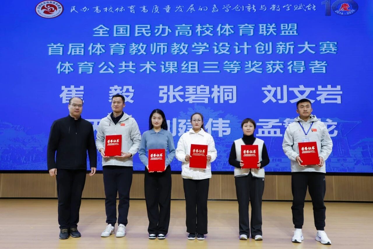 在11月22日至23日于河南郑州举办的全国民办高校体育联盟首届体育教师教学设计创新大赛中,我校体育教研部杨菲、张碧桐两位教师,凭借其创新的教学设计与过硬的专业能力,分获全国二等奖与三等奖,充分展示了我校教师队伍的教学风采与扎实功底。