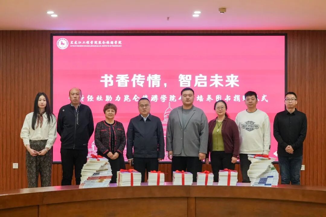 12月17日上午,中国财政经济出版社图书捐赠仪式在学校群观楼614会议室举办。中国财政经济出版社教材分社黑龙江省策划编辑、重点选题负责人谷文,哈尔滨世纪千华图书有限责任公司刘丹军、金鑫,我校党委副书记、副校长武录齐及教务处、图书馆、资产处等相关部门负责人出席仪式。仪式由武录齐主持。