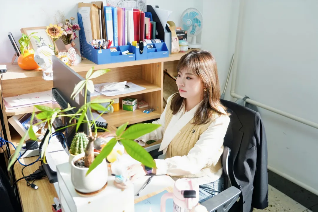 她把每一次重复都当作第一次那样认真对待,把师生的事当作自己的事来操心。在她看来,热情和细心不是刻意维持的状态,而是源于对工作价值的真正认同。如果说要给自己一个角色定位,她更愿意把自己比作一颗“螺丝钉”,但更希望是一颗“润滑剂”或者说“护航员”。