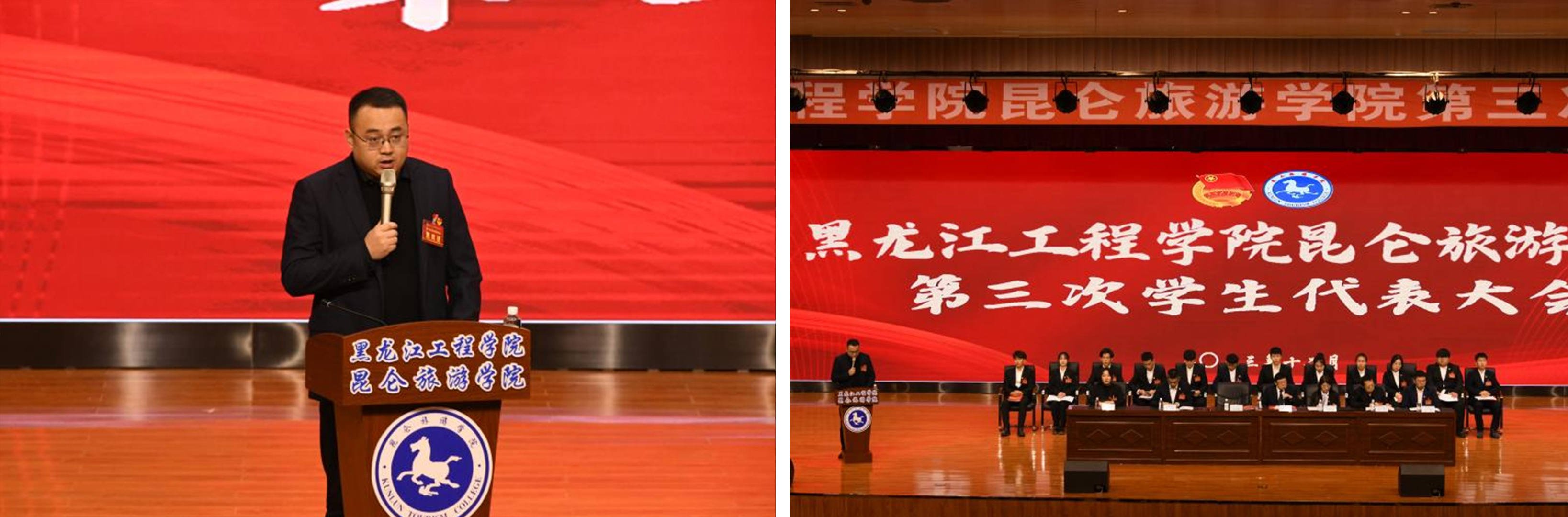 至此,黑龙江工程学院昆仑旅游学院第三次学生代表大会开幕式顺利召开。