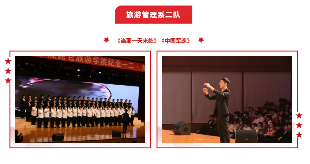 本次比赛以系为单位组队参加,8个合唱团演唱了16首曲目。比赛在外语系一队的合唱中拉开序幕,随后《黄河大合唱》《我爱你中国》《走向复兴》《少年中国说》《祖国不会忘记》《当那一天来临》等参赛曲目依次呈现。