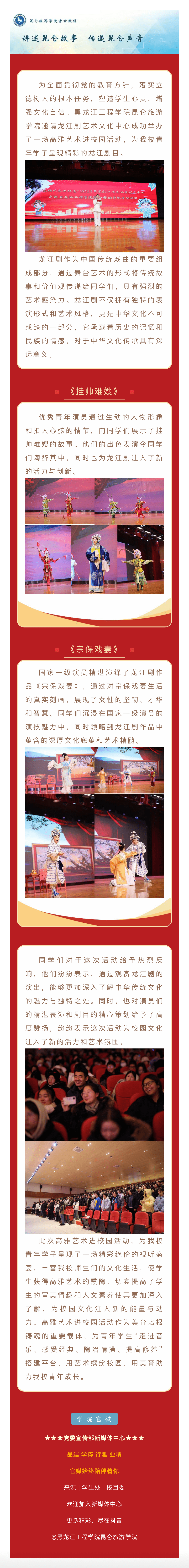 高雅艺术进校园黑龙江工程学院昆仑旅游学院携手龙江剧艺术中心促文化传承