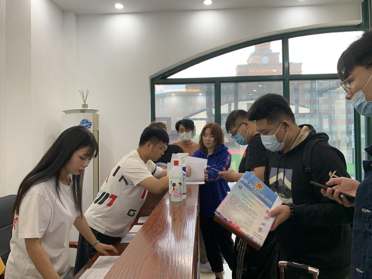 工作人员热情的接待每一位回家的毕业生,并同时接过他们的行李,迅速地带他们进行注册,第一时间引导毕业生们办理宿舍入住。全体工作人员有条不紊的带领返校毕业生完成报到的所有程序。