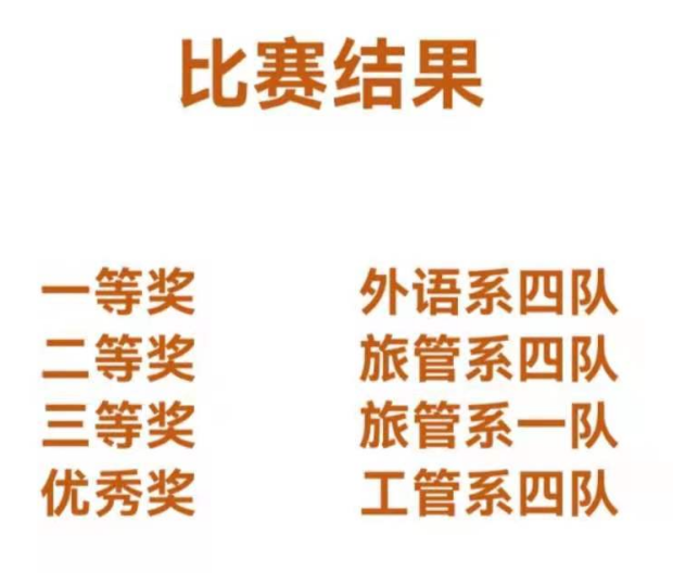 活动的最后,外语四队、旅管一队、旅管四队、工商四队分别取得良好名次并合影留念。 此次“安全知识竞赛”活动圆满结束。